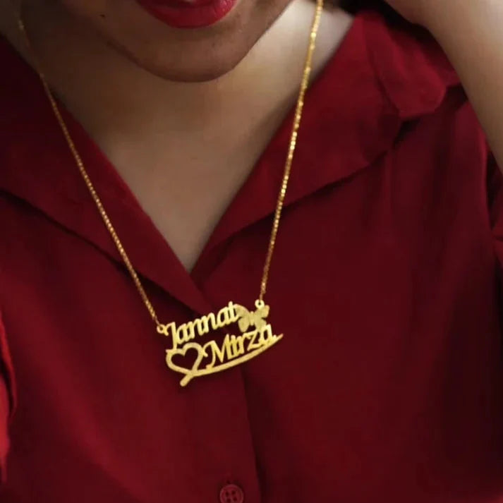 Make your style truly personal with our Custom Name Necklace with Heart & Butterfly, a timeless piece designed to celebrate love, identity, and elegance. Beautifully crafted with a sleek finish, this personalized necklace lets you wear your name or your loved one’s name close to your heart.